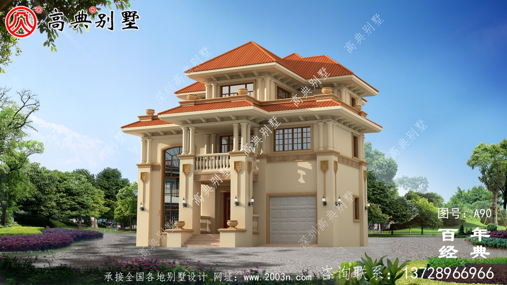 [框架结构]美丽的三层乡村别墅带露台设计图_三层别墅设计