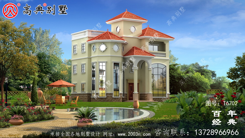 欧式古典三层复式别墅效果图_农村三层自建房设计图,